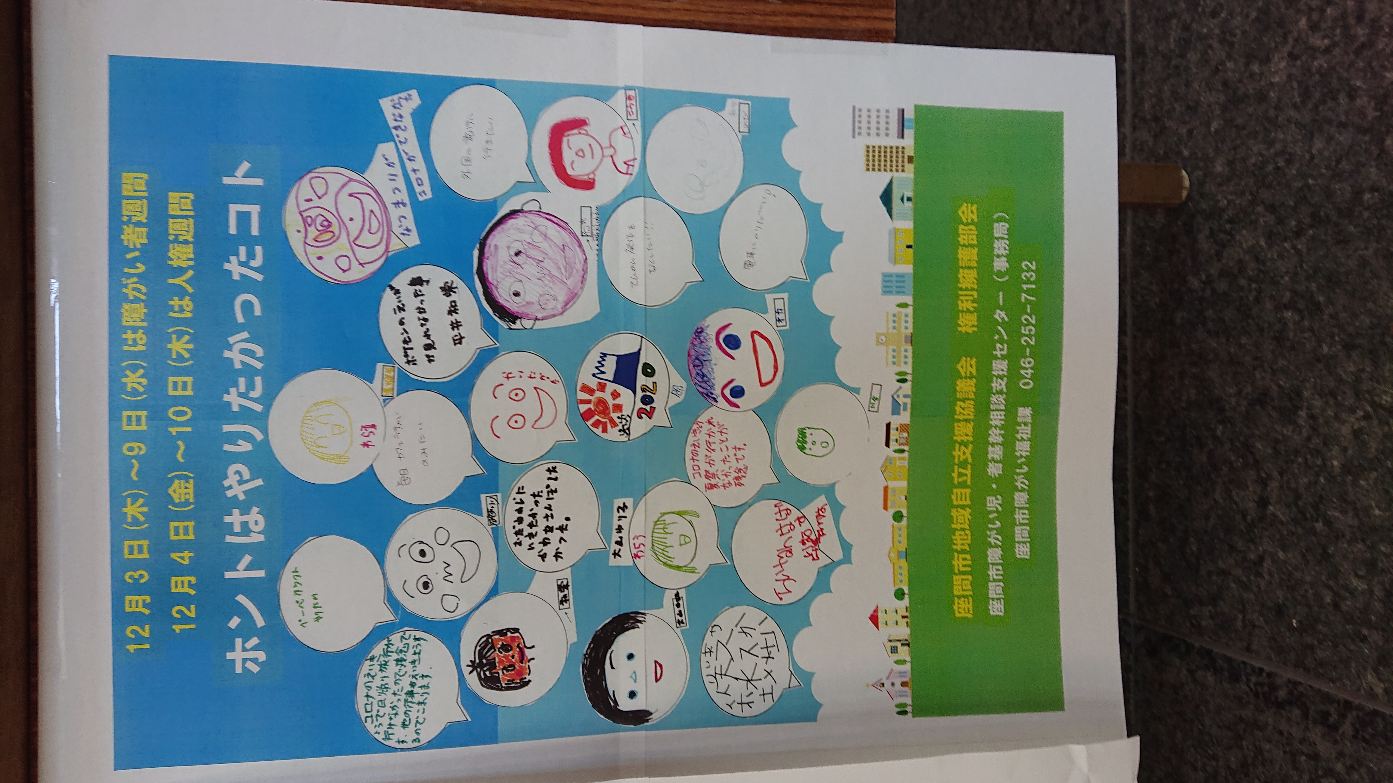 12月の障害者週間、人権週間にあわせて座間市地域自立支援協議会、権利擁護部会でポスターを作成しました。たくさんの方からイラストやメッセージを頂きました。是非ご参加ください!